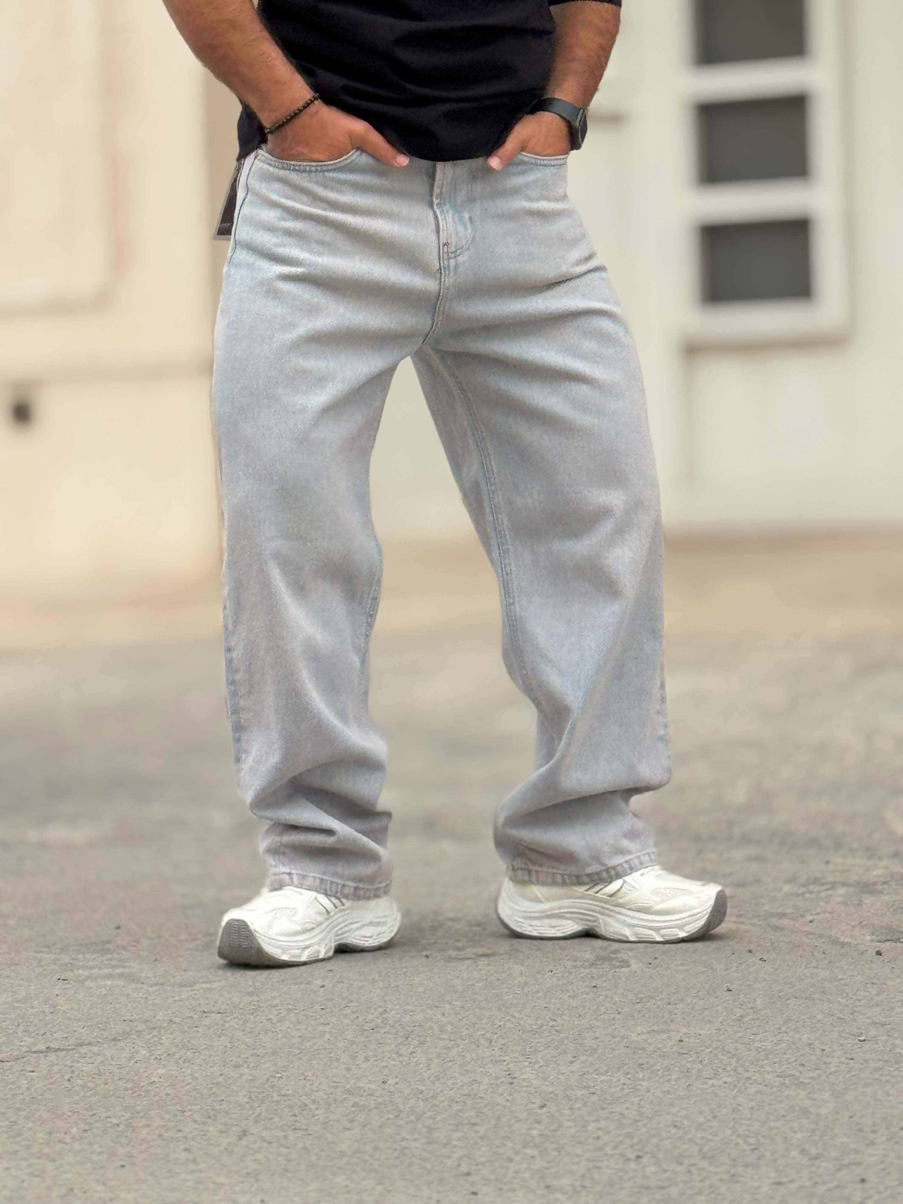 شلوار جین فول بگ رنگ طوسی روشن با کیفیت بالا