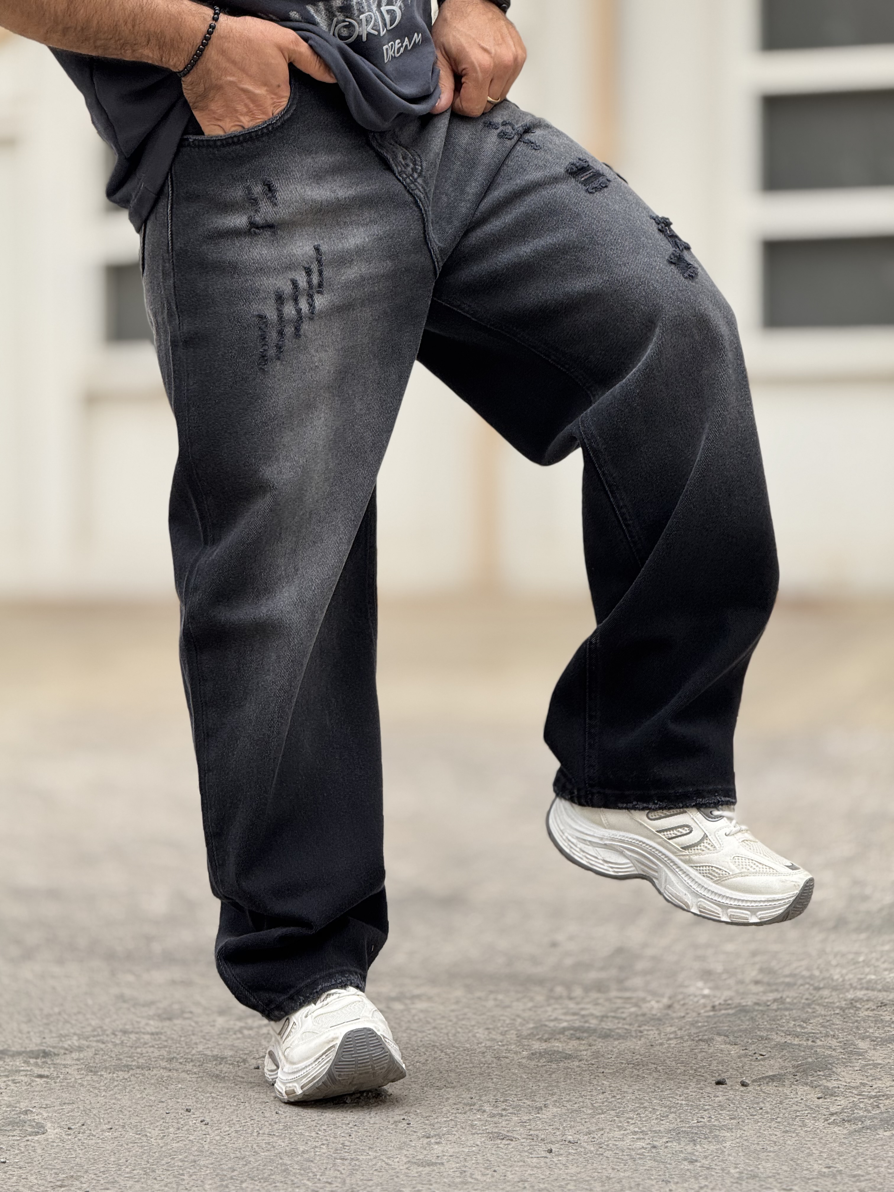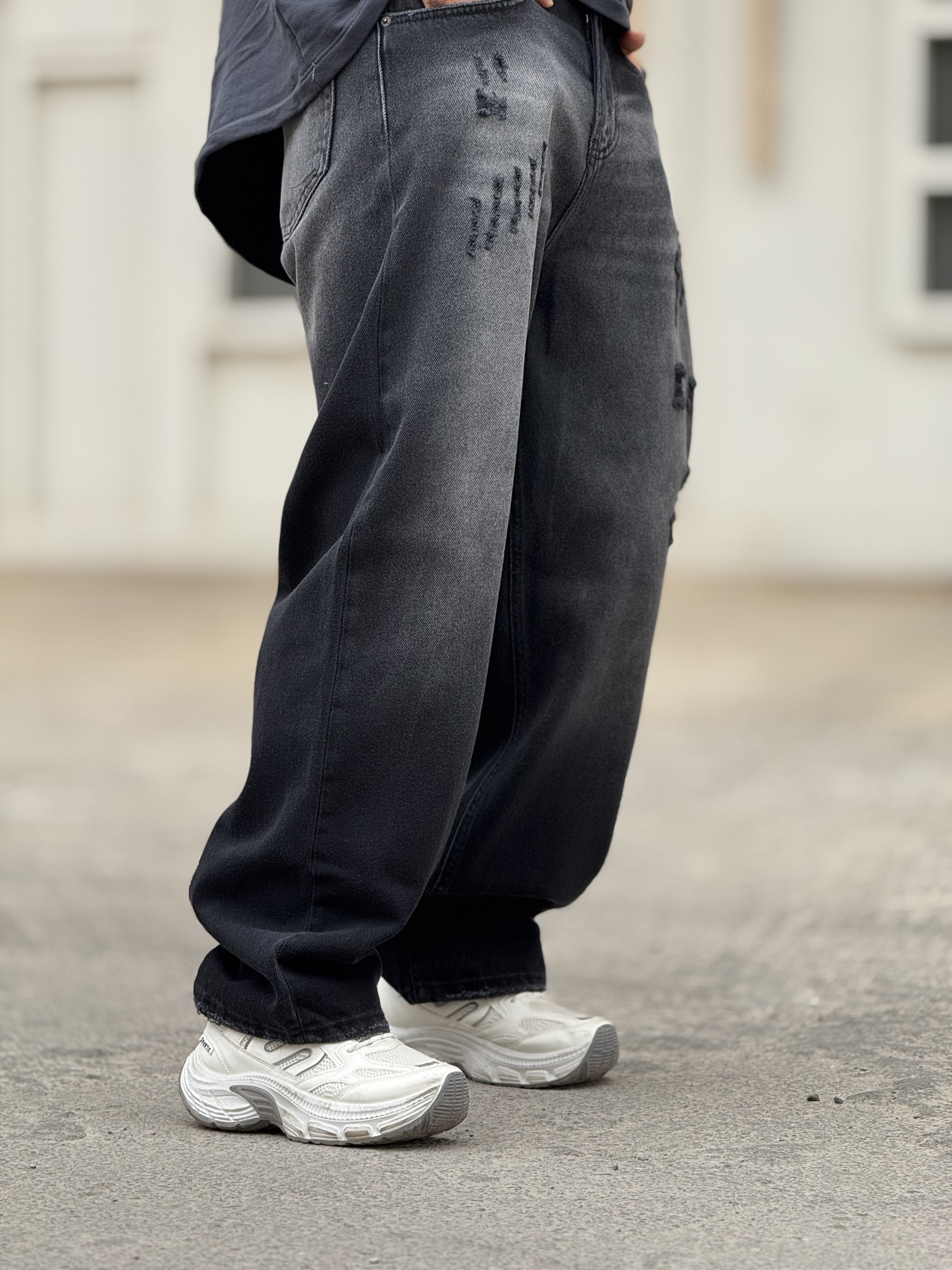 شلوار جین فول بگ مشکی شست زاپدار با کیفیت بالا و تضمین شده مناسب برای استایل های روز مره